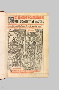 Un des livres illustrés les plus curieux du début du xvie siècle, d'une grande rareté. # Belle impression gothique de Philippe le Noir, réalisée vers 1525 selon Brunet, avec le titre et la douzième page en rouge et noir, une série de jolies lettrines fleuronnées dans le texte et de la marque de Philippe le Noir (Renouard, n°624) au verso du dernier feuillet. # L'illustration se compose de dix-neuf remarquables gravures sur bois représentant des loups vêtus de costumes religieux, très expressives, qui sont « peut-être les plus étranges du siècle » selon Guy Bechtel. # Elle s'inspire du cycle iconographique de la première édition de l'ouvrage, publiée par Antoine Vérard vers 1503, dans laquelle le texte de Gobin était suivi d’une Danse des morts. Brunet tient notre édition pour plus rare encore que celle de Vérard, dont on ne connaîtrait pourtant que sept exemplaires. Seuls deux exemplaires de celle-ci, conservés dans les bibliothèques Mazarine et Sainte-Geneviève, sont référencés dans les collections publiques internationales. # L'ouvrage est un curieux traité de morale mêlé de prose et de vers, dans lequel Robert Gobin, qui était doyen de Lagny-sur-Marne, met en scène un dialogue entre Archilupus, un loup revêtu d’habits religieux qui peint les péchés de façon à les rendre aimables, et Sainte Doctrine, une bergère personnifiant l'Église. Pour dénoncer les vices des ecclésiastiques, l'auteur n’hésite pas, dans la seconde partie de l'ouvrage, à mettre en cause les plus hautes autorités du clergé, tels les papes Jean XXII et Boniface VIII, ce qui faisait considérer ce doctrinal moral par La Croix du Maine comme « le plus hardi livre pour parler en toute liberté des ecclésiastiques que nous ayons encore vu écrit par un homme de sa profession ». # Le propos moral de l'ouvrage n'a pas manqué de paraître paradoxal à certains critiques, tel Goujet dans sa Bibliothèque françoise, car, dans ce prétendu traité de morale, « les Loups ravissans parlent [...] aussi souvent que Sainte Doctrine (chargée d'enseigner les agneaux) ; et que ne disent-ils pas ? Les maximes les plus corrompues sont toujours dans leur bouche ; leur école est celle du libertinage le plus outré ; les peintures qu'on y fait des vices y sont extrêmement libres ; tout y est montré sans voile ; tout y est dit sans énigme. » # On trouve aussi diverses fables dans l'ouvrage, dont celle du Meunier, son fils et l’âne, qui inspira La Fontaine. # Exemplaire grand de marges, avec quelques témoins, réglé à l'encre rose. # Très bel exemplaire, cité par Guy Bechtel, parfaitement établi par Hippolyte Duru. # De la bibliothèque du baron Lucien Double (Cabinet d'un curieux, 1890, n°101 ; 1897, n°112), avec ex-libris. # Cassure habilement réparée aux deux feuillets O2 et O3. Insignifiants frottements sur la coiffe de tête et les attaches de mors. # Bechtel, G-151 (exemplaire cité) – Brunet, II, 1632.