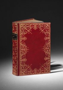 noir, coupes ornées, dentelle intérieure dorée, doublures et gardes de tabis bleu, tranches dorées (Reliure du XVIIIe siècle).