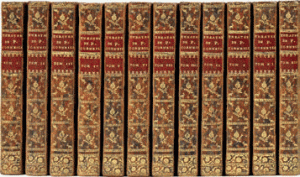 12 vol. in-8, veau porphyre, dos ornés avec pièces titre et tom. vieux rouge, encadr. de trois filets sur les plats, tr. rouges sur marbr. (Rel. anc.).