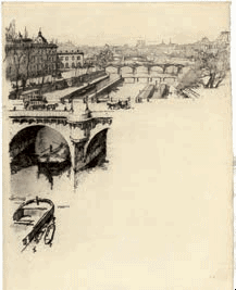Suite complète d'une couverture et de 20aux-fortes originales d'Eugène Béjot, représentant les points les plus intéressants de chacun des 20 arrondissements de Paris