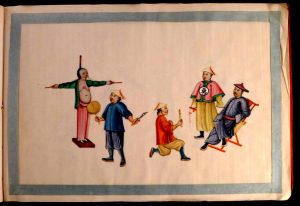 Jolies compositions aux couleurs vives, exécutés sur un papier végétal dit "pith paper" ("papier de moelle", plutôt que papier de riz), représentant des scènes de justice et de châtiments sur fond blanc : ce type d'illustration était exécuté en Chine, mais à destination d'un public occidental.