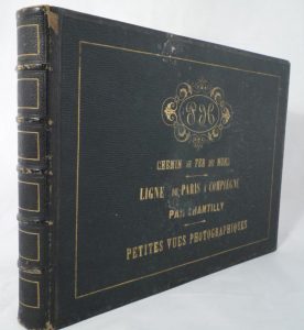 La compagnie des chemins de fer du Nord a été créée en 1845 par le banquier James de Rothschild (1792-1868), Jean-Henri Hottinguer et Edward Blount, afin d'assurer le trafic vers la région Nord, et en particulier vers les régions minières. La première ligne joignant Paris à Douai et Lille (1846) fut vite étendue vers Valenciennes, Gand, Amiens et Boulogne (1847). La compagnie des chemins de fer du Nord absorba peu à peu les autres compagnies de la région, et le réseau fut rapidement l'un des plus denses et des plus actifs en France. La ligne Paris-Compiègne via Chantilly fut mise en service en 1859. Jean Henri Hottinguer (1803-1866), frère de Philippe Rodolphe, fut Régent de la Banque de France, puis directeur de la banque familiale. Il participa à l'aventure du chemin de fer, et sa famille fut très présente dans les conseils d'administration des différentes compagnies. En 1830, les Hottinguer reçurent l'autorisation de construire l'une des premières lignes de chemin de fer, Epinal-Canal de Bourgogne. Ils participèrent aussi au Paris-Saint-Germain des Pereire, et se lancèrent ensuite dans la Compagnie du Centre. Ils furent à l'origine, avec les Rothschild, de la Compagnie du Nord, du Paris-Orléans, du Paris-Rouen et du Paris-Lyon. Notre exemplaire a donc été offert par le Baron Rothschild à l'un de ses associés dans l'entreprise de la construction du réseau ferré nord. La Bibliothèque Nationale possède l'exemplaire n°2 de cet ouvrage, offert à M. G. Dalon, et provenant de la collection Georges Sirot (cote RES VE-1427-8). Elle possède aussi l'exemplaire n°2 des " Chemins de fer du Nord. Ligne Paris à Boulogne " (1855), offert également à M. G. Dalon, provenant de la même collection et comportant 50 photographies (cote RES VE-1368-1). Ces deux exemplaires sont répertoriés par Bernard Marbot, dans sa " Liste des albums de la collection Sirot " (Paris, 1983). Si Marbot attribue l'album de la ligne Paris-Boulogne à Baldus, en revanche, il laisse celui de la ligne de Paris-Compiègne anonyme. Cependant, la notice actuelle de la BN attribue aussi ce dernier album à Baldus. En consultant l'exemplaire de la ligne Paris-Boulogne, on constate que sept photographies sont effectivement signées par Baldus ; tandis qu'aucune photographie n'est signée dans l'exemplaire de la ligne Paris-Compiègne. Cette attribution a-t-elle été faite par extension ? Par ailleurs, la signature de l'une des photographies de la ligne Paris-Boulogne est rognée (n°21 " Vue de Saint Leu l'Esserent "), ce qui laisse supposer que d'autres signatures ont pu disparaître. Et, en effet, la BNF attribue 36 épreuves de cet album à Édouard Baldus, dans son catalogue d'exposition " Des photographes pour l'Empereur " (sous la direction de Sylvie Aubenas, 2004). R. Malcom Daniel, dans son ouvrage " The photographic Railway albums of Edouard Baldus " (2002), examine les différents albums du Chemin de fer du Nord qui ont été attribués à Baldus. Il en distingue six dont trois comportent de grandes photographies et trois autres de petits clichés. A cette distinction s'ajoute celle du destinataire, à savoir que trois de ces albums sont des pièces uniques destinées à des souverains (l'un à la Reine Victoria et les deux autres à Napoléon III), tandis que les trois autres ont tous été commandés par le Baron James de Rothschild et tirés à 25 exemplaires pour les membres du Conseil d'Administration de la Compagnie du Chemin de fer du Nord.