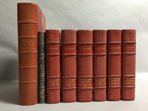 - ROUSSET (A.). Dictionnaire géographique, historique et statistique des communes de la Franche-Comté. S.l., FERN, 1969. 6 vol. in-8, demi-chagrin rouge à coins, dos à 4 nerfs, auteur et titre dorés, têtes dorées, couv. et dos conservés, (dos passés).