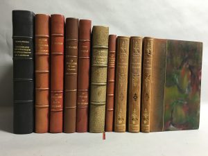 - CHARRIE (Pierre). Le folklore du Haut-Vivarais. Paris, FERN, 1968. Grand in-8, demi-chagrin rouge à coins, dos à 4 nerfs, auteur et titre dorés, tête dorée, couv. et dos conservés (dos passé, épidermure).