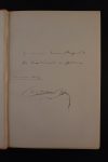Titre dans un encadrement au pochoir, programme dans un encadrement de dentelle dorée et table des matières. Édition originale de la partition musicale de Saint-Saëns, pour le drame créé à l'Opéra comique en mars 1887. Exemplaire comportant un double envoi : autographe de Camille Saint-Saëns "A monsieur Ernest Reyer, mes biens dévouées (...) affections", daté du 12 mars 1887, accompagné de la signature de Louis Gallet : Ernest Reyer (1823-1909) est un musicien originaire de Marseille, quelque peu tombé dans l'oubli, mais dont on a retenu une marche funèbre composée en 1852 à l'occasion des funérailles du Maréchal Gérard, restée célèbre malgré elle grâce à sa reprise par Théophile Gautier, qui en fit une chanson licencieuse : "La Mort, l'apparition et les obsèques du capitaine Morpion", plus connue sous le nom de De profundis morpionibus.