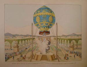 Superbe exemplaire, très bien relié à l'époque, du tirage courant de ce texte qui retrace l'histoire de la première aérostation et de son développement au XIXe siècle, richement illustré de 22 planches en couleurs, dont 4 doubles, et de 20 photogravures.