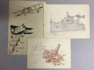 [MILITARIA]. Ensemble de croquis d'armement, navires et avions de guerre, à l'encre et au crayon sur papier. XXe siècle.
