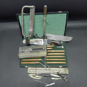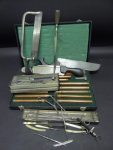 3 scies dont une Charrière, bistouris, 1 serre-nœud de BLAKE, méatotome, thermo-cautérisateur de DRAPIER.
