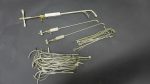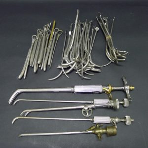 5 brise-pierre à bascule, et près de 60 sondes et explorateurs dont certains signés Collin, le tout en métal nickelé.