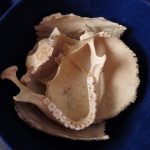 - 1 crâne en morceaux dont 1 mandibule complète dans une boîte ronde et haute à deux compartiments.