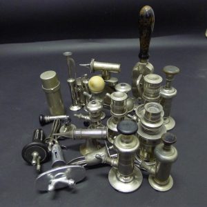 VARIA. Dont aspirateurs, injecteurs à soupape, masseur gingival, stéthoscopes asiatique, anesthésiques locaux et analgésiques instantanés en métal nickelé.