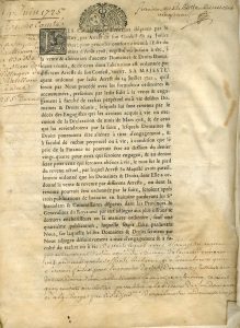 FRANCHE-COMTÉ.- Document sur peau de vélin en partie imprimé et en partie manuscrit relatif à la vente de la seigneurie de haute, moyenne et basse justice des villages de Châtillon-le-Duc. Le document daté du 14 juin 1725 est signé par dix...