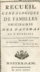 [JAERENS (A.-F.) et le Chevallier HOLLEBER D'ASCOW]. Recueil généalogique de familles originaires des Pays-Bas ou y établies. Rotterdam, sans édit., 1775,