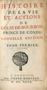 [LA BRUNE (Jean de) ?] Histoire de la vie et actions de Louis de Bourbon, prince de Condé. Nouvelle édition. Cologne, Pierre Marteau, 1694,