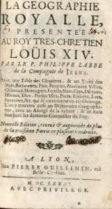 LABBE (Philippe). La Géographie royalle, presentée au Roy tres-chrétien Loüis XIV. Avec une Table des chapitres, et IIII Traité des Mots, Royaumes, Païs, Peuples, Provinces, Villes, Châteaux, Montagnes, Forests, Ports Rivières, Lacs,...