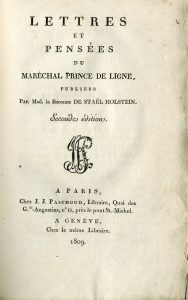 SECONDE ÉDITION.- LIGNE.- Lettres et pensées du Maréchal Prince de Ligne, publiées par Mad. La Baronne de Staël Holstein. Seconde édition. Paris et Genève, J.J. Paschoud, 1809,