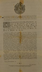 CHIENS TENUS EN LAISSE.- Mandement publié au Péron de Liege, au son de trompette. Liège, J.F. Bassompierre, 1791