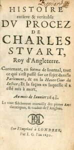 [MILTON (John)]. Histoire entiere et veritable du Procez de Charles Stuart, roy d'Angleterre. Contenant, en forme de Iournal, tout ce qui s'est passé sur ce sujet dans le Parlement, et en le Haute Cour de Iustice ; et la façon en laquelle il a...
