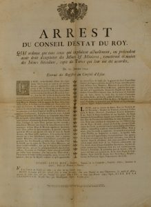 été accordés". L'ordonnance est signée par Julien-Louis Bidé, Seigneur de Grandville, Intendant de Justice, Police et Finances en Flandres. Lille, Imprimerie de la Veuve C.M. Cramé, 1741,