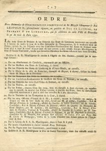 PAYS-BAS AUTRICHIENS.- Ordre des cérémonies de l'inauguration solennelle de Sa Majesté l'Empereur et Roi Léopold II, glorieusement régnant en qualités de Duc de Lothier, de Brabant et de Limbourg, qui se célébrera en cette ville de Bruxelles...