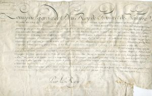 RÉGIMENTDE PICARDIE.- Nomination au grade de capitaine dans le Régiment de Picardie de L. Dugravier. Document sur peau de vélin, signé "Louis" [XV] et daté du 14 novembre 1746".
