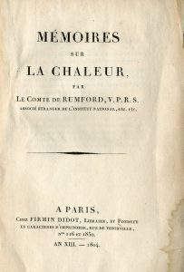 RUMFORD (Comte de). Mémoires sur la Chaleur. Paris, Firmin Didot, An XIII - 1804,