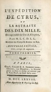 Exemplaire du traducteur.- XÉNOPHON.- L'Expédition de Cyrus, ou la Retraite des dix mille. Ouvrage traduit du grec de Xénophon, par M.L.C.D.L.L. [César Henri Guillaume de La Luzerne, seigneur de Beuzeville et de Rilly, baron de Chambon,...