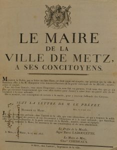 ENSEMBLE DE 6 PLACARDS. -Ville de Metz. 1. 15 mai 1815.