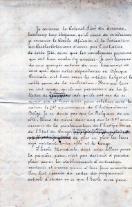 ÉTAT INDÉPENDANT DU CONGO.- Discours du roi Léopold II prononcé au Cercle Africain le 2 juillet 1905 pour la création l'Ecole Mondiale de Tervueren.