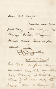 STANLEY (Henri Morton, pseud. de J. Rowlands). Lettre autographe.- STANLEY (Henri Morton, pseud. de J. Rowlands). Croquis originaux à l'encre et au crayon relatifs à un engin permettant de transporter de lourdes charges au-dessus d'un ravin ou d'un...