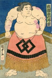 Lutteur de sumo en tenue de parade. Estampe format oban.