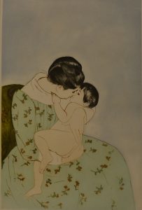 CASSATT (d'après Mary). "Le Baiser maternel". Pointe sèche et aquatinte tirée sur vergé d'Arches.