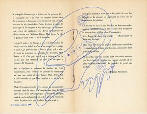 plaquette 8° de 12 p., agrafée, couverture illustrée d'après un monotype de Georges Collignon. Bien complet des 4 pages centrales imprimées sur papier vergé et intitulées "Max Ernst" (texte et poèmes de Dotremont, Alechinsky et Zangrie ornés d'un dessin inédit de Ernst). On joint 1 feuillet in-12 de "Le Tout Petit Cobra" et le texte de Joseph Noiret "Ode à la B.A." (1 feuillet 8°)./ Ens. 3 pièces.