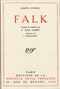 CONRAD (Joseph). Falk. Trad. de l'anglais et préfacé par G. Jean-Aubry. P., Nouvelle Revue Française, 1934,