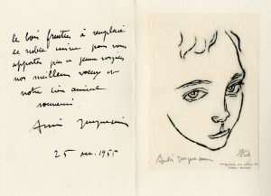 8°, en feuilles, double emboîtage édit. Tiré à 185 ex. num. 1/17 ex. sur Arches comprenant une suite complète sur Arches, celui-ci enrichi de 2 dessins originaux dédicacés et signés, d'une eau-forte dédicacée et signée et d'une carte de voeux manuscrite ornée d'une gravure justifiée et signée.