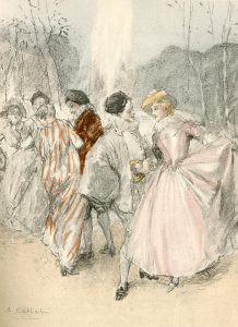 VERLAINE (Paul). Fêtes galantes. Romances sans paroles, suivies de La Légende de Paul Verlaine (inédit) d'A. Van Bever. Cinq compositions originales en couleurs de A. Calbet reproduites en héliogravure. P., Rombaldi, 1936,