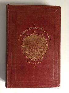 Jules VERNE : Les aventures du capitaine Hatteras Cartonnage à plat personnalisé « à l'étoile », bordeaux (1871).