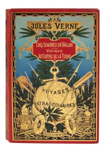 Jules VERNE : Cinq semaines en ballon - Voyage au centre de la terre Cartonnage au globe dorée type 3 (1898-1902),
