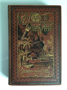 Jules VERNE : Les enfants du capitaine Grant. Cartonnage rouge-brun « à l'obus », (1872-1874).