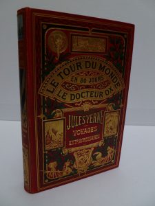 Jules VERNE : Le docteur Ox - Le tour du monde en 80 jours. Cartonnage à un éléphant et au titre dans l'éventail (1905-1914),
