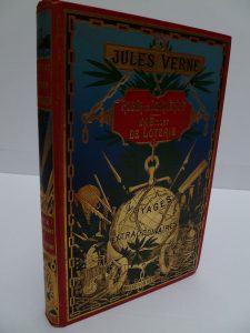 Jules VERNE : Robur le conquérant/ Un billet de loterie. Cartonnage au globe doré type 3 (1898-1902), (corps de l'ouvrage daté de 1886), catalogue de 1898 in fine, dos au phare.
