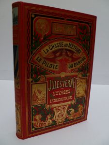Jules VERNE : La chasse au météore/ Le pilote du Danube. Cartonnage à un éléphant et au titre dans l'éventail (1908),