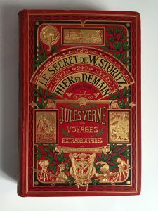 Jules VERNE : Le secret de Wilhelm Storitz/ Hier et demain. Cartonnage à l'éventail titre dans l'éventail et un éléphant (1910),