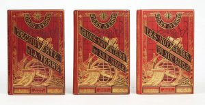 Jules VERNE : Les grands navigateurs du XVIIIe siècle. Cartonnage rouge à la sphère armillaire ptolémaïque,