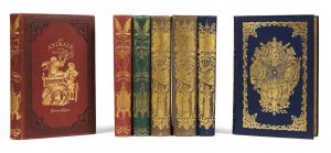 2 vol. in-4 cartonnage romantique gris taupe, décor orné d'allégories et de médaillons représentant des monarques et des empereurs, dos orné d'un heaum, d'une bannière fleurdelisé et d'un canon napoléonien, tranches dorées, (cartonnage de l'éditeur), E. L. Dr. Camplez, BE, légers frottements.