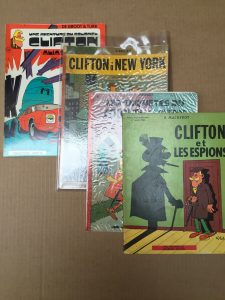 MACHEROT. Clifton : lot de 4 volumes brochés. Les enquêtes du colonel Clifton EO Lombard/ Jeune Europe, 1961, ME. Clifton à New York EO Lombard/ Jeune Europe, broché, 1962 EM. Clifton et les espions EO Lombard/ Histoires du Journal de Tintin,...