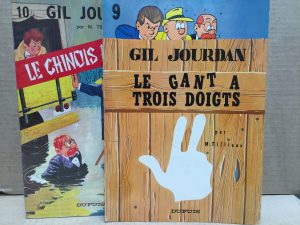 TILLIEUX. Gil Jourdan : 2 volumes. Le gant à trois doigts EO Dupuis 1966. Broché BE dos restauré. Le Chinois à 2 roues, EO Dupuis 1967.