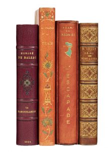 1 vol. in-4 relié demi-maroquin fushia à coins, dos à nerfs, caisson mosaïqués, tête dorée, couvertures et dos conservés, (reliure signée Trinckvel), TBE.