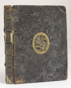 1 volume In-8° - Reliure de l'époque veau brun aux armes des Feydeau de Brou (dédorures, cuir craquelé et légèrement épidérmé, mors fendus, 2 coins usés) - Dos à nerfs orné de chiffres dorés (coiffes manquantes avec manques de cuir aux caissons, 1 caisson décollé) - Quelques moisissures en début d'ouvrage, des mouillures éparses - Bel ex-libris armorié du Comte de la Revelière - Olivier - Hermal - Roton - Manuel de l'amateur de reliures armoriées françaises, planche 160, fer n°3.