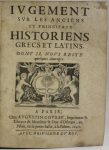 [LA MOTHE LE VAYER (François de)] - Jugement sur les anciens et principaux historiens grecs et latins dont il nous reste quelques ouvrages - Paris ; Augustin Courbé, 1646 -